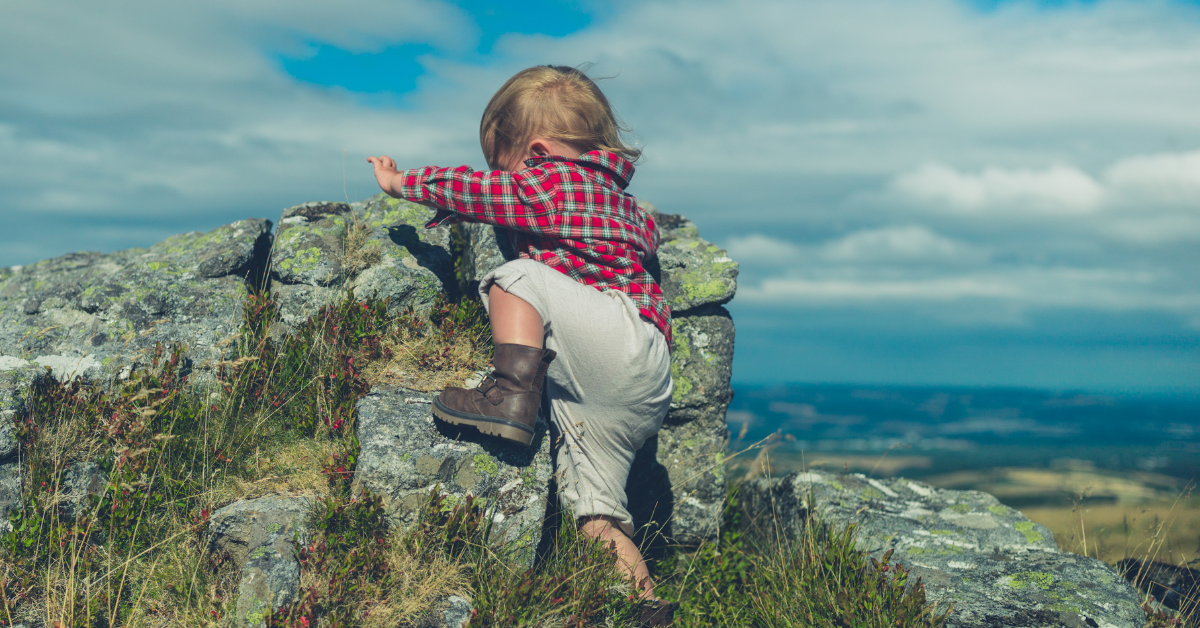 Avoid placing your child in a situation/position they don’t know how to, nor are capable of, getting themselves out of. If your child climbed up a rock, it’s important and reasonable to help them climb down on their own. The body teaches the mind, and needs practice to learn how to get out of tricky situations.